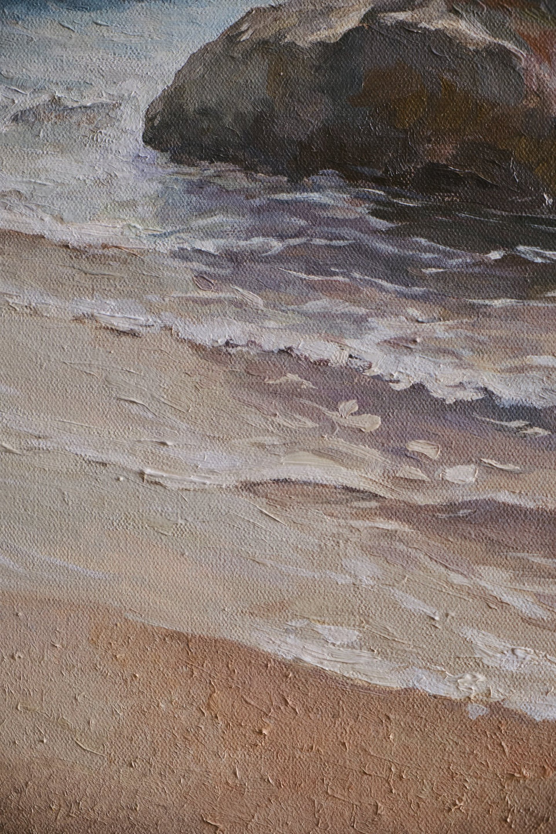 Consequently, the studio operates on a principle of strict selection rather than volume. Every completed canvas is the result of a rigorous process of reduction—removing the unnecessary until only the essential atmosphere remains. To ensure each piece exists as an independent, tactile object, it is finished with high-grade protective varnish and features fully painted edges. This attention to archival detail ensures the work is ready for immediate installation and a prolonged connection with the collector.